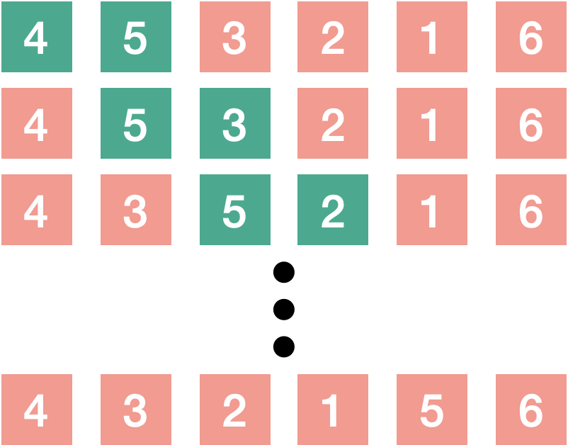 마지막 인덱스는 정렬이 완료되었기 때문에 2 사이클부터는 sort 과정에서 제외됩니다.